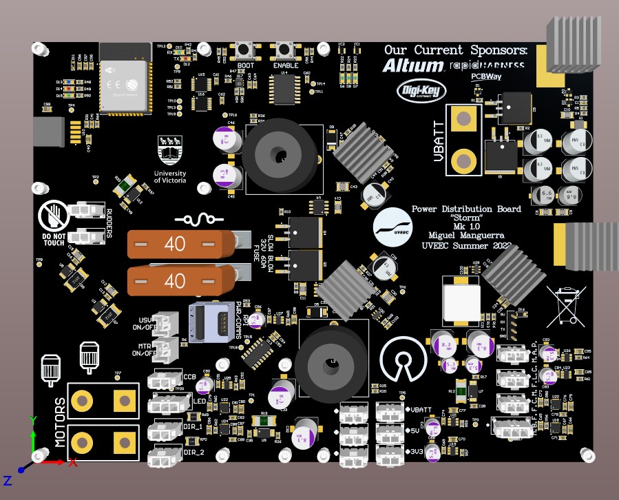 Currently building a Smart Power Distribution Board that was designed to power the USV's electronics (BLDC motors, Central Controller Board, Raspberry Pi, etc.) while protecting against reverse voltage and overcurrent faults. The power drawn by external electronics were also measured alongside the health and status of the battery’s cells. An emergency shutdown feature was also implemented to manually shutdown the entire USV with one click of a button.